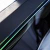 D’autre part, ce mouvement dévoile une ouverture pour réduire la pression s’exerçant sur la carrosserie lors du déplacement du véhicule. L’air est alors prélevé en face avant et expulsé en surface des roues. Ce carénage virtuel des roues a pour effet d’annuler les interférences aérodynamiques avec les liaisons au sol en association à un travail des jantes à cinq branches. Réalisées en aluminium, elles sont parcourues de fines gorges qui contribuent à leur légèreté. Cette fonction aérodynamique est également présente en partie arrière. Le flux d’air est prélevé par une ouverture pratiquée au niveau de la ceinture de caisse dans la portière avant. Il est alors dirigé vers le diffuseur, surplombé des feux 3D unis par un bandeau lumineux.
