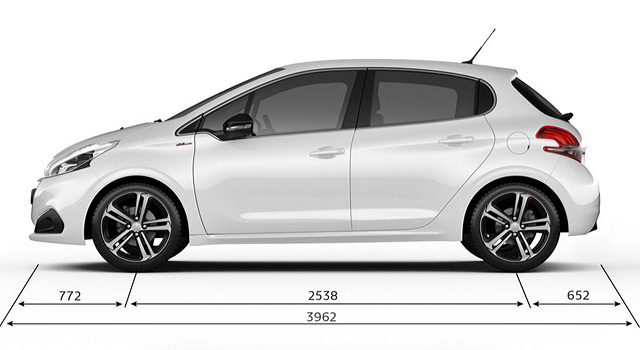 Les carrosseries 3 et 5 portes se veulent très différenciées : la silhouette de la version 3 portes est plus sculptée, tandis que la version 5 portes est plus classique dans ses lignes. Sur la 208 5 portes, les vitres latérales sont cerclées de chrome (sur les versions haut de gamme), tandis que sur les 3 portes, un discret liseré chromé souligne les vitres latérales et se termine sur la custode arrière avec un enjoliveur chromé, qui n’est pas sans rappeler une autre série 2 mythique : la Peugeot 205…