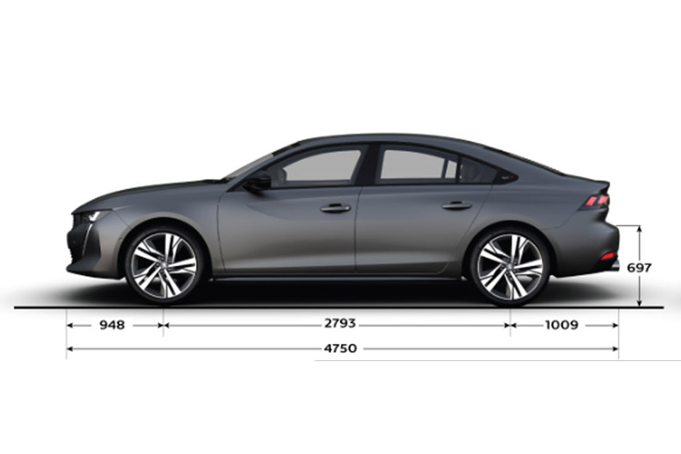 Avec 4,75 m de longueur hors tout, la nouvelle Peugeot 508 elle est parmi les berlines les plus compactes du marché mainstream et est plus proche de la concurrence premium. Sensiblement identique à l’Audi A5 Sportback, elle est ainsi plus courte de 11 cm que la VW Arteon (4,86 cm). Et si sa longueur a diminué de 8 cm par rapport à la génération précédente, l’empattement – à 2,79 m – n’a été raccourci que de 2,4 cm afin de préserver une habitabilité adaptée aux usages des clients du segment. La nouvelle Peugeot 508 offre ainsi un ratio empattement / encombrement parmi les meilleurs du segment !