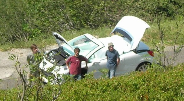A l’approche du photographe, ces trois messieurs se sont vite empressés de cacher l’intérieur de la belle avec une bâche, et d’ouvrir le coffre et le capot pour tenter de dissimuler les lignes générales de la 207CC…