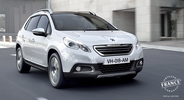La Peugeot 2008 est le 5ème modèle de la Marque Peugeot à obtenir le label « Origine France Garantie », après la Peugeot 508 fabriquée à Rennes, et les nouvelles Peugeot 308, Peugeot 3008 et Peugeot 5008, fabriquées à Sochaux. Ce label est remis par l’association Pro France, au terme d’une démarche de certification effectuée par Bureau Veritas.