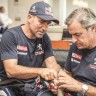 Que dire alors de ce qui attend Cyril Despres ? L’ancien motard, cinq fois vainqueur en deux roues, commence une nouvelle vie sur quatre roues. A quelques minutes de ce saut dans l’inconnu, il oscille entre l’impatience et une petite pointe d’anxiété qu’il cherche à dissimuler. Après un run à la droite de Stéphane Peterhansel en guise de repérage, arrive le moment de prendre les commandes pour la première fois : les yeux émerveillés et tout sourire, il est comme un enfant devant une montagne de cadeaux. Sous les regards de l’équipe, consciente d’assister à un moment historique, il démarre et s’élance – déterminé – pour ce galop d’essais initiatique. Après quelques dizaines de kilomètres, retour à la base : des larmes d’émotion se mêlent aux gouttes de transpiration. « C’est fou !, lâche-t-il, ébahi par l’expérience. Dans tous les domaines, c’est bien mieux que ce que j’imaginais ! Et encore, je suis loin d’être à fond… ».
