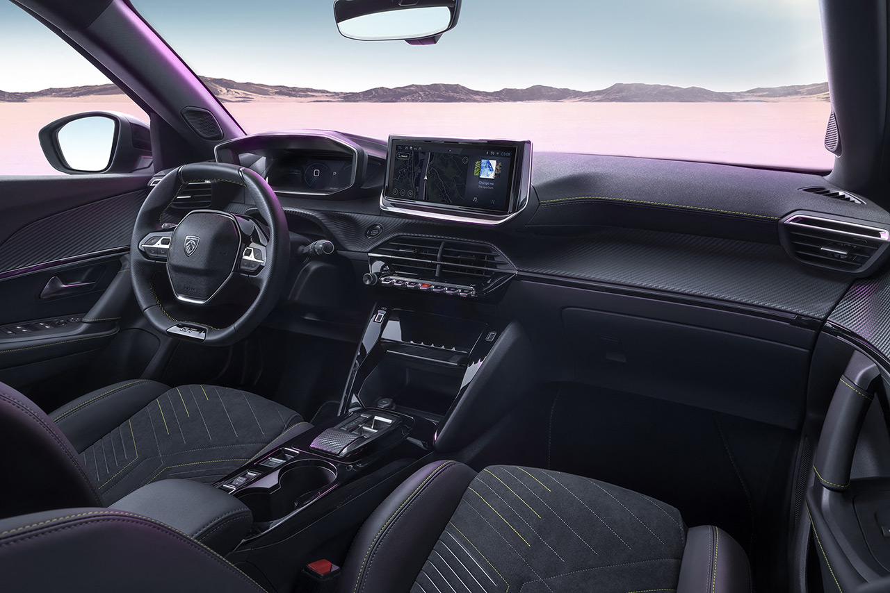 À l’intérieur, on retrouve de nouveaux garnissages en tissu, ainsi qu’une nouvelle sellerie en Alcantara, disponible en option sur la 2008 GT. On retrouve désormais jusqu’à 3 prises USB-C et une prise USB-A (en fonction des versions), ainsi qu’un chargeur à induction pour smartphone plus puissant de 15 W (contre 5W précédemment).