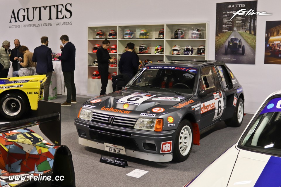 Photo de la Peugeot 205 T16 sur le stand d'Aguttes au 47è Salon de la voiture ancienne et de collection Rétromobile de Paris, en Février 2023