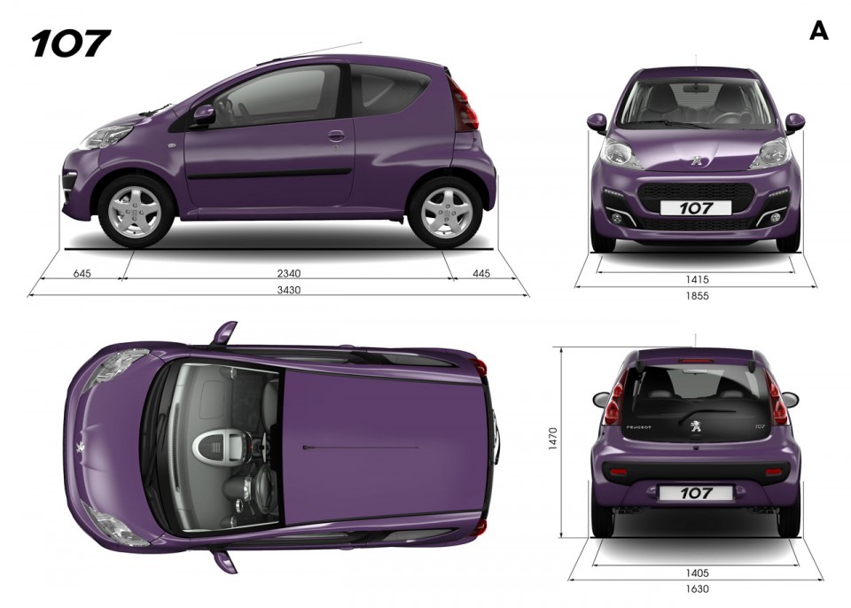 Dimensions de la Peugeot 107 phase 3 - 1-030