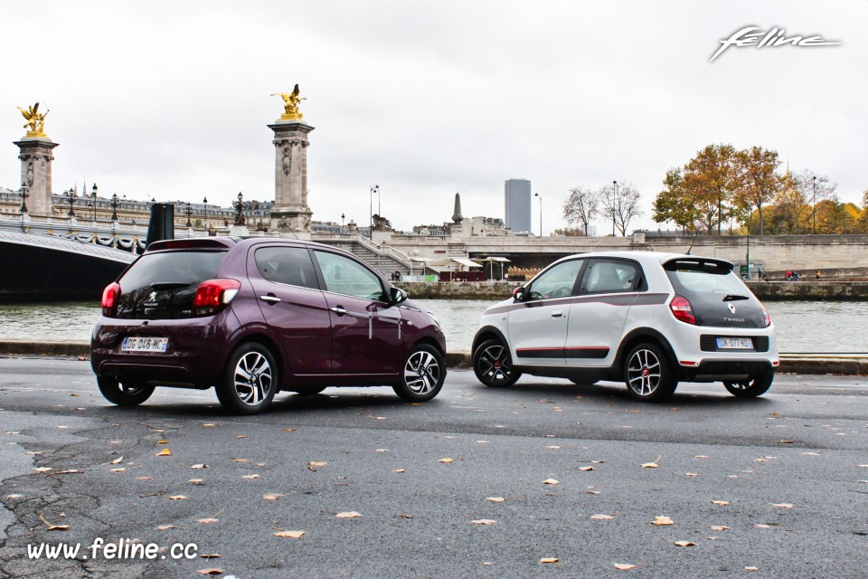 Photo comparatif Peugeot 108 Allure Top et Renault Twingo 3 Edit