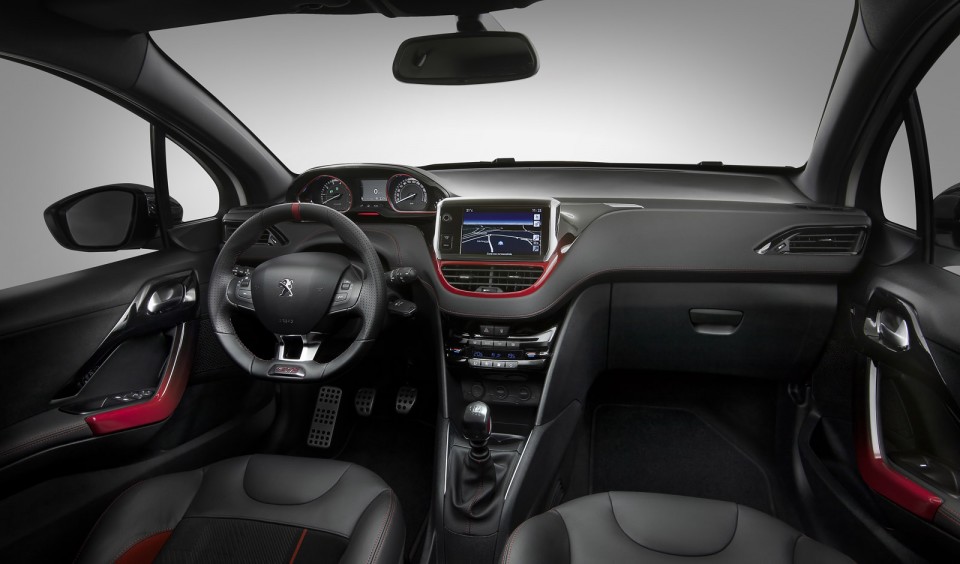 Photo officielle de l'intérieur de la Peugeot 208 GTi I (2013), la petite citadine sportive et raffinée équipée du 1.6 THP de 200 chevaux...