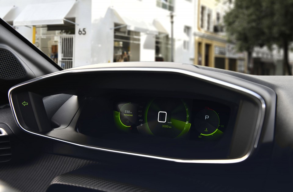 Photo du combiné i-Cockpit 3D de la Peugeot 208 II GT Line Jaune Faro (2019), la nouvelle citadine polyvalente du Lion, qui s'affirme pour sa seconde génération par son style soigné et son caractère haut de gamme, insufflant jeunesse et sportivité...