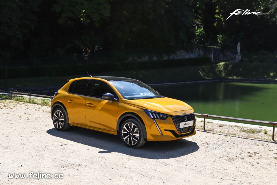 Photo de la Peugeot 208 II GT Line Jaune Faro (2019), à l'occasion de notre premier contact et shooting photo de la nouvelle citadine du Lion au style affirmé et contemporain, accompagnée de la première génération de Peugeot 208 I, et en avant-première de sa présentation et de sa commercialisation prévue pour l'automne 2019