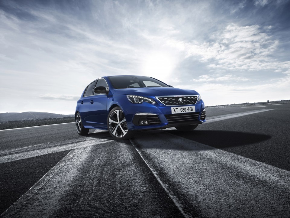 Photo officielle de la nouvelle Peugeot 308 GT restylée (2017), présentée ici dans sa version haut de gamme GT avec la peinture métallisée Bleu Magnetic