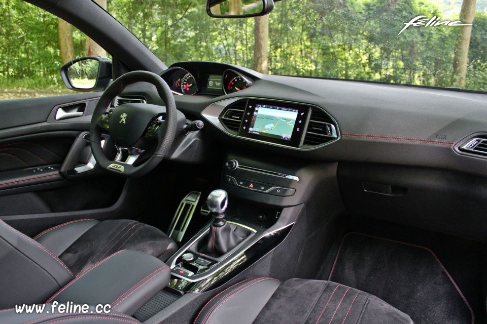 Photo de l'intérieur de la Peugeot 308 SW GT Blanc Nacré lors de notre essai de la nouvelle 308 SW GT équipée de la motorisation quatre cylindres essence 1.6l THP de 205 chevaux, avec boîte mécanique BVM6