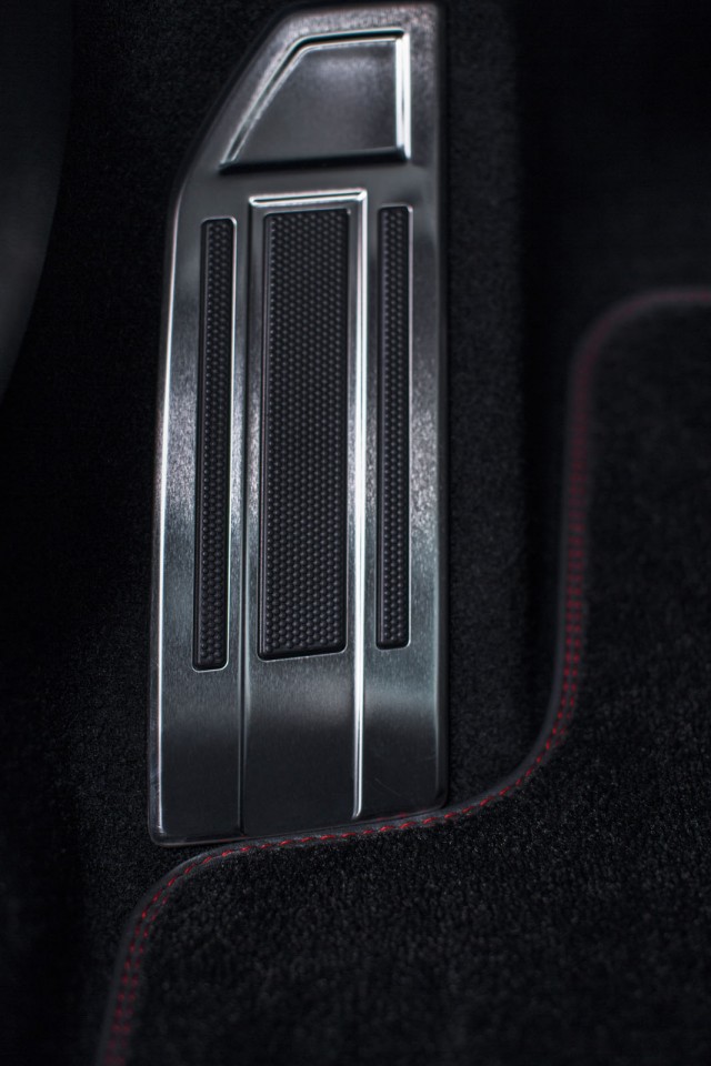 Photo officielle d'un repose pied aluminium de la Peugeot 308 SW GT (2014), la version distinctive haut de gamme de la nouvelle 308 break équipée de motorisations essence et diesel dynamiques, d'un châssis spécifique et d'équipements exclusifs...