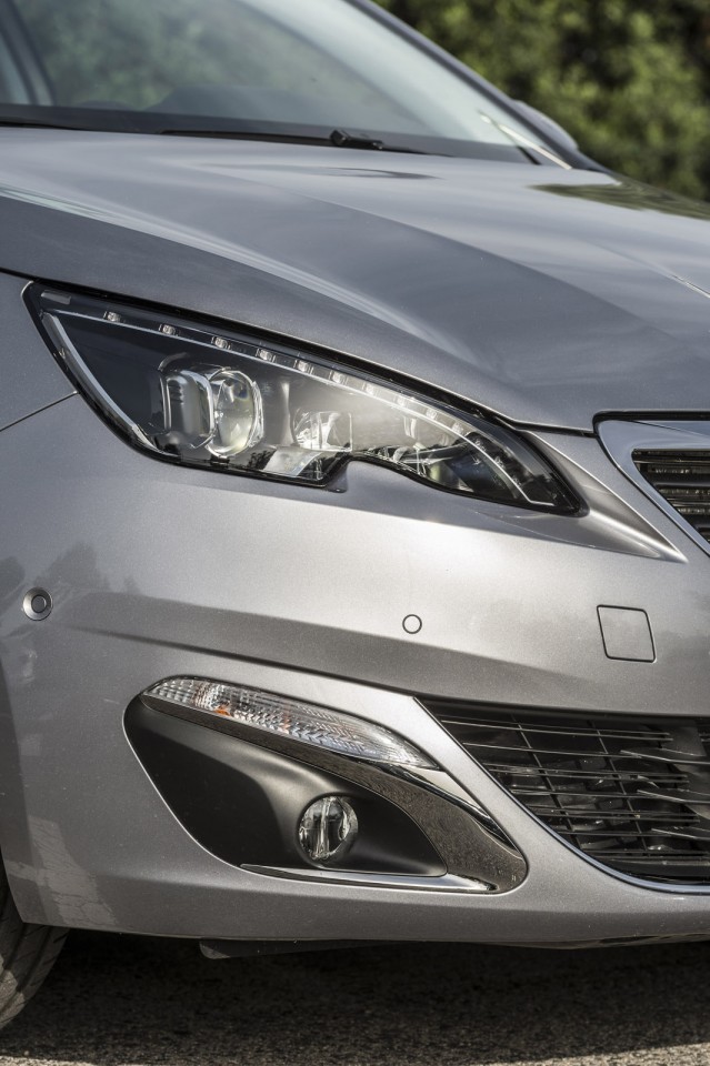 Photo officielle de détail d'un bouclier avant de la nouvelle Peugeot 308 II Féline Gris Artense, la nouvelle berline compacte du Lion, en Espagne