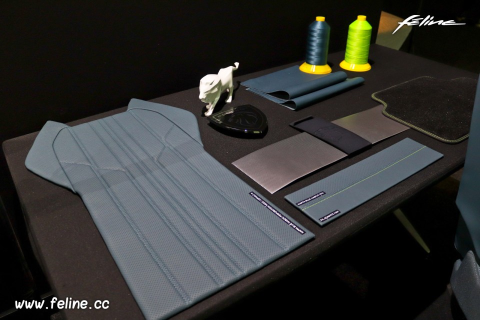 Photo des couleurs et matières de la Peugeot 308 III option Cuir Bleu, la nouvelle berline compacte de Peugeot, à l'occasion de notre premier contact et shooting photo en avant-première de sa présentation et sa commercialisation prévue en septembre 2021