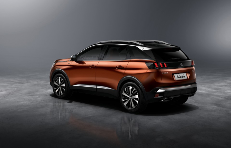 Photo officielle de 3/4 arrière de la nouvelle Peugeot 4008 II Chine (2016), version allongée du SUV 3008 II destinée au marché chinois
