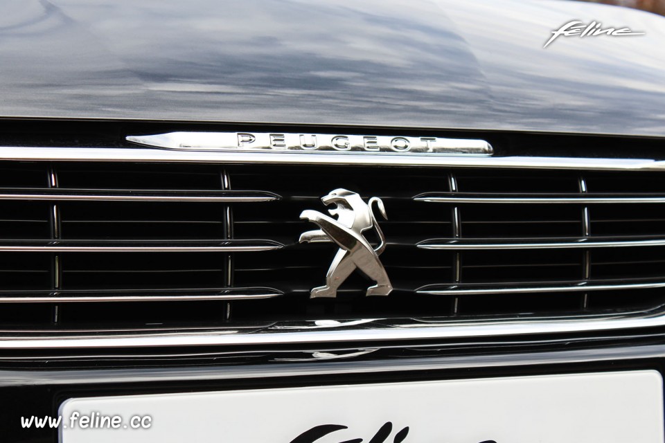 Photo de la calandre avant Peugeot 508 RXH I phase 2 Gris Haria, notre essai du grand break allroad équipé de la motorisation hybride 2.0 HDi HYbrid4 200 chevaux (moteur thermique 2.0l HDi 163 ch ETG6 + moteur électrique de 37 ch)
