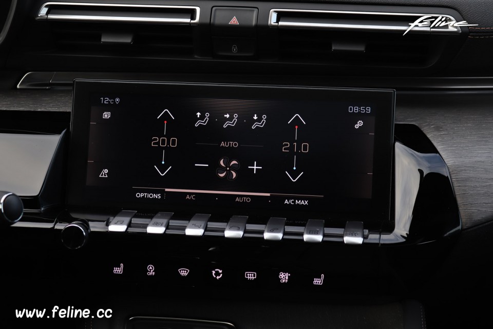 Photo de la climatisation sur l'écran tactile de la Peugeot 508 SW II à l'occasion des essais presse internationaux de la nouvelle Peugeot 508 SW II, le nouveau break radical de la marque au Lion, qui se sont tenus dans la région de Lisbonne, au Portugal (Novembre 2018)