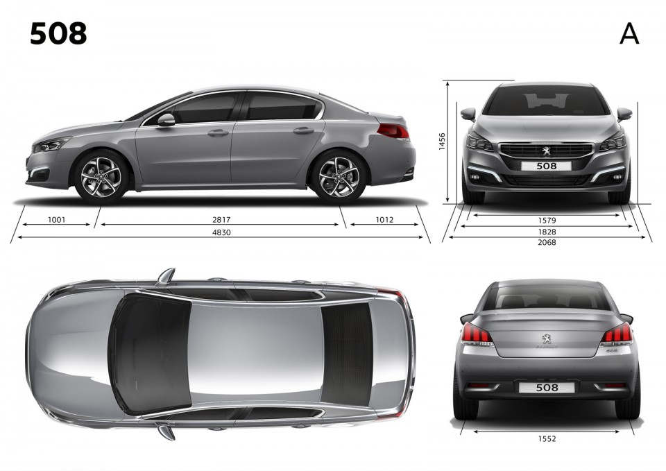 Dimensions extérieures Peugeot 508 restylée (2014)