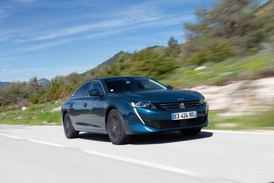 Photo officielle de la Peugeot 508 Allure Bleu Célèbes 1.5 BlueHDi 130 ch EAT8 lors des essais presse internationaux de la nouvelle Peugeot 508 II de la marque au Lion dans la région de Nice, entre la France et Monaco (Juin 2018)