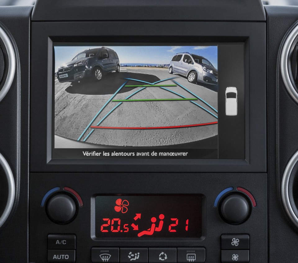 Photo officielle de la caméra de recul du nouveau Peugeot Partner Tepee restylé (2015), le ludospace familial et pratique, alliant habitabilité et praticité d'un véhicule multi-usages