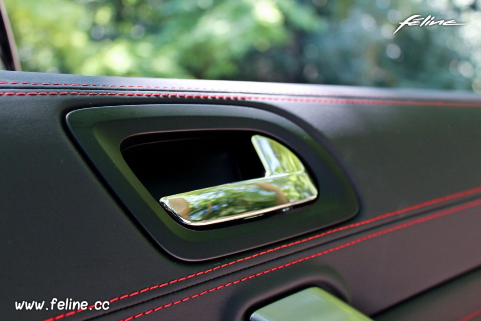 Photo de détail d'une poignée de porte chromée de la Peugeot RCZ GT Line Blanc Nacré lors de notre essai de la nouvelle RCZ GT Line équipée de la motorisation quatre cylindres diesel 2.0l HDi de 160 chevaux, avec boîte mécanique BVM6