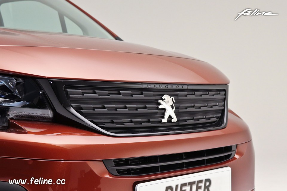 Photo de la calandre avant du Peugeot Rifter GT Line (2018) Metallic Copper, le nouveau ludospace à l'esprit baroudeur, à l'occasion de notre premier contact et shooting photo en avant-première de sa présentation au Salon de Genève 2018